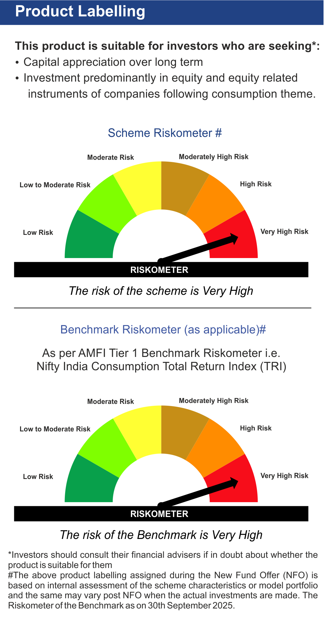 As per AMFI Tier 1 Benchmark Riskometer i.e. Nifty India Consumption Index (TRI) #